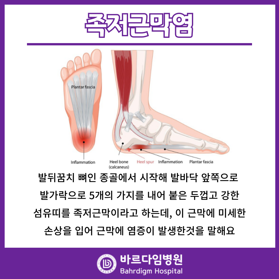 족저근막염 은 보존적 치료만으로도 충분히 호전시킬 수 있는 질환이에요.